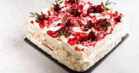 меренговые коржи, крем чиз, вишневый джем с пряностями